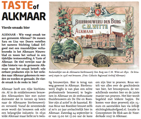 Leuk artikel over Alkmaar en Bier uit het Alkmaars Nieuwsblad van 20 september. Ook Brouwerij de Die wordt hierin genoemd. Alkmaars speciaalbier komt weer helemaal terug!